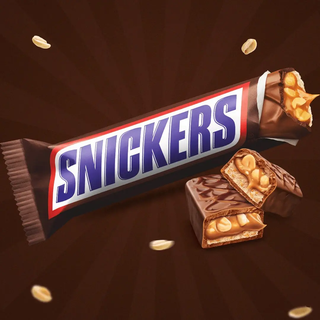 Snickers is the ultimate snack for hunger satisfaction — a delicious bar filled with roasted peanuts, nougat, rich caramel, and coated in smooth milk chocolate. Loved around the world, Snickers delivers energy and flavor in every bite.